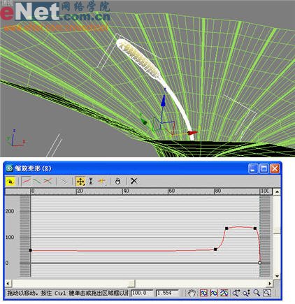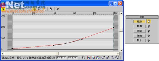 4、選中l(wèi)oft01,單擊“修改”命令面板,展開(kāi)“變形”卷展欄,單擊“縮放”按鈕,在彈出的面板中修改其曲線,形成花的樣子,效果如圖4所示。