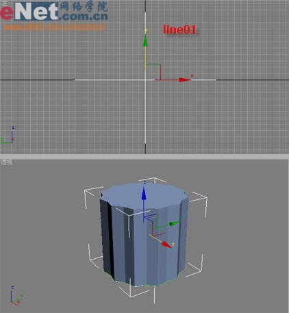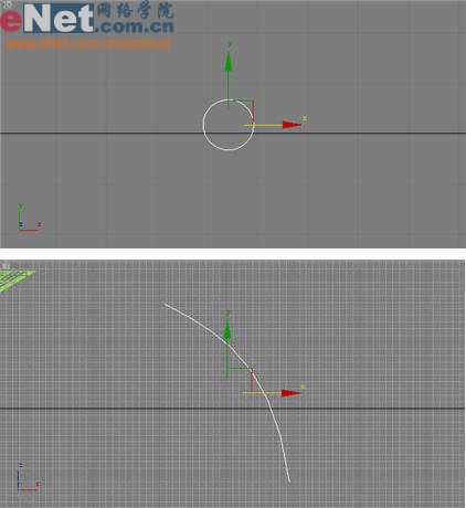 5、點(diǎn)擊“創(chuàng)建”命令面板中的“圖形”按鈕進(jìn)入其面板,點(diǎn)擊“圓”按鈕,在頂部視圖中繪制一圓形circle01,同樣的,在前視圖繪制一線條line02,如圖5所示。