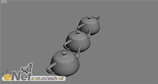 2、按住shift不放,在視圖中拖動(dòng)出另2個(gè)茶壺teapot02、teapot03,并適當(dāng)調(diào)整其位置,如圖2所示。