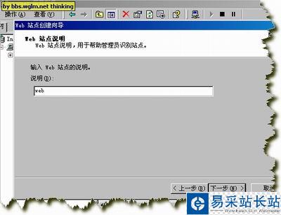 第一步,站點(diǎn)說明,隨便,如果您有多個虛擬服務(wù)器的話,建議您給每個服務(wù)器取個容易記住的說明,方便管理