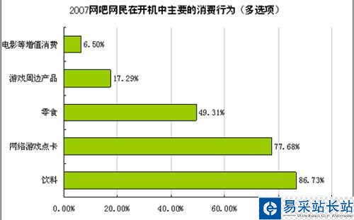 從上圖可以看出目前網民在網吧中運行的程序也從早期的僅提供網頁瀏覽,文本聊天,查詢資料等應用發展到今天要提供視頻聊天,影視服務,競技游戲等日益復雜的應用,同時網民在上網的同時還附帶了大量的其他消費,而這些銷售也給網吧提供了更多的收益。通過對網吧主要收入的分析,我們發現網吧的主營收入基本是由網民的上網費及上網中產生的其他消費組成,而這些收入無不與網吧良好穩定的網絡相關。網吧的核心競爭力無疑是強大的網絡應用和多元化的增值服務,如果沒有網絡平臺的強力支持,上層的核心競爭力是無法保證的,最終也是導致網吧盈利受損。
