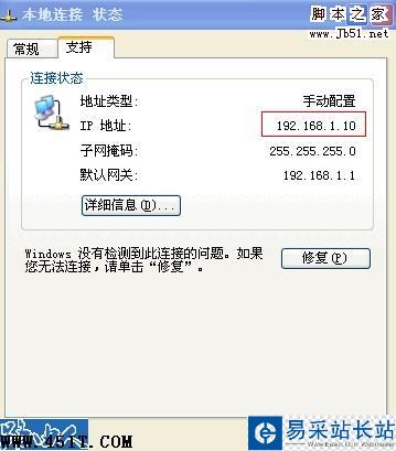 4、檢查本地連接的IP地址與路由器LAN口IP處于同一網(wǎng)段。如果不在同一網(wǎng)段,可以手工配置一個(gè)IP地址,如下圖: