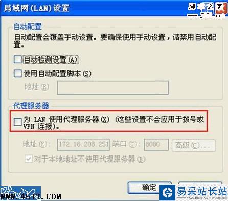 1、檢查IE是否設(shè)置了代理,如果有請(qǐng)取消。在上圖中點(diǎn)擊局域網(wǎng)設(shè)置,如下圖: