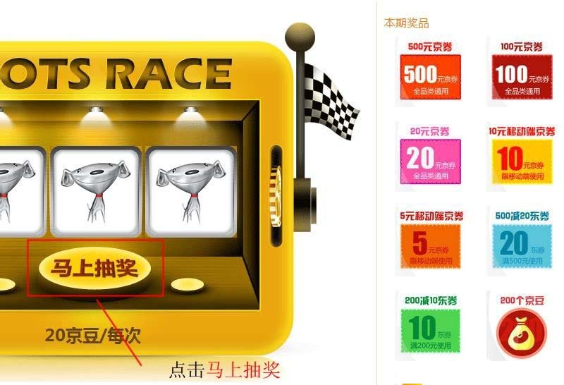 京東的京豆可以抵人民幣用,也可以抽獎。抽獎獎品不定期的改變,獎品為京券、東券、京豆等。(100京東等值于1元人民幣)