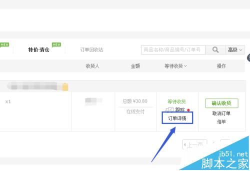 3、然后在“我的訂單”頁面的待收貨這里,我們點擊“等待收貨”欄下方的“訂單詳情”按鍵。