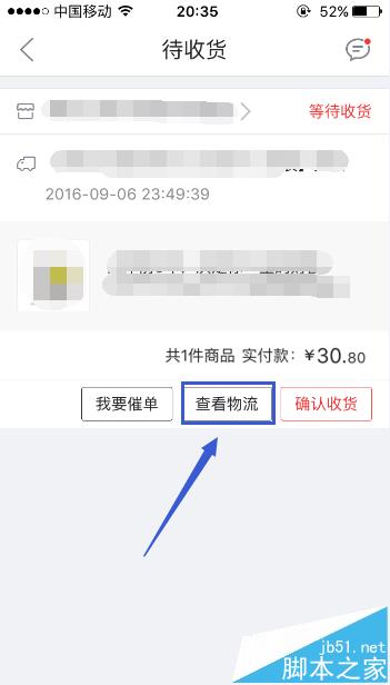 2、然后在“待收貨”頁面我們點擊下方的“查看物流”按鍵。