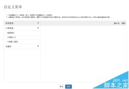 商家在開發微商城后,可同時創建最多3個一級菜單,每個一級菜單下可創建最多5個二級菜單。商家還可根據微商城的發展階段,實時更改微信公眾號菜單欄。