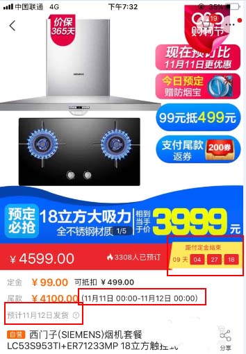 3)滿減活動需在定金期生效,尾款期才可以享受