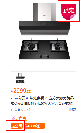 2、搜索結果中,商品圖片右上角有“預定”標識,商品促銷有“定金團”標識的,即為預售商品