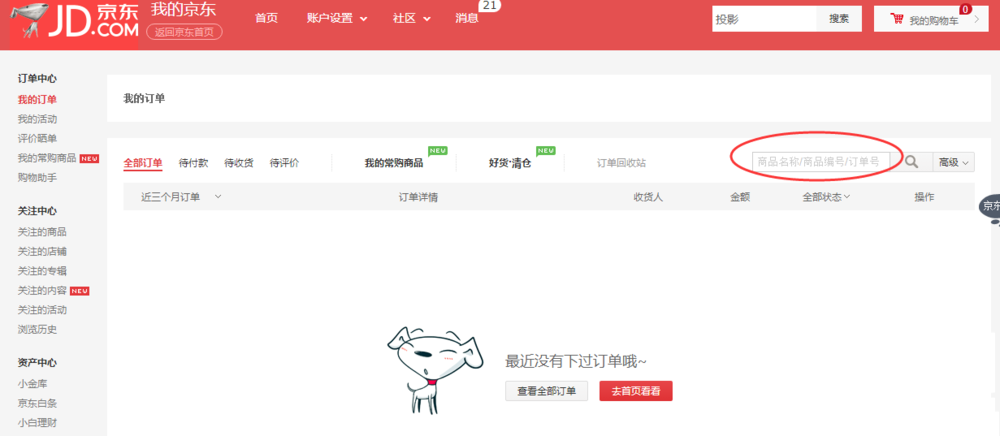 5、如果因?yàn)橹挥杏唵翁?hào)不清楚具體的訂單的話,復(fù)制下訂單號(hào),回到會(huì)員首頁,進(jìn)入到我的訂單,在方框內(nèi)輸入訂單號(hào)。