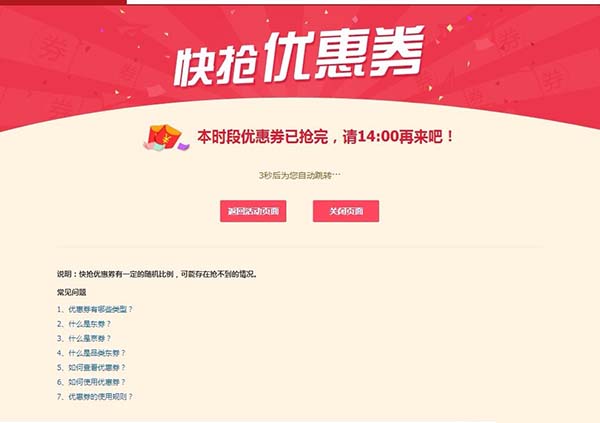 5、如果提示沒有搶到,就只有等下一個時間段再來搶券。