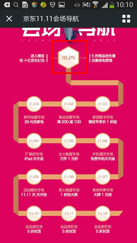 4)進入后,點擊第一個,進入搶紅包【10.25】。(大家也可以觀看下微信11.01-11.12號的所以優惠活動噢)