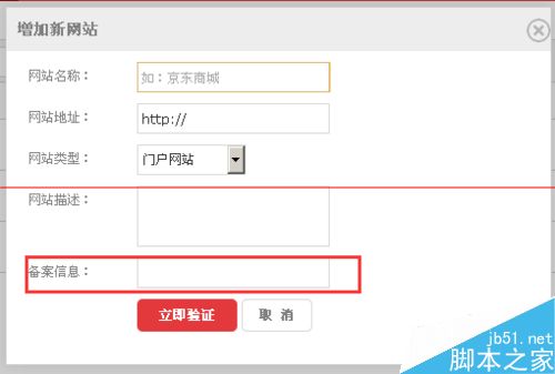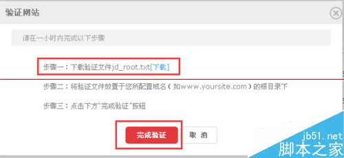 8、網站信息填寫完整以后,點擊“立即驗證”,在彈出來的窗口中,根據提示,先下載驗證文件“jd_root.txt”,此文件必須要放在童鞋們網站的根目錄,文件上傳好以后,點擊立即認證就可以了
