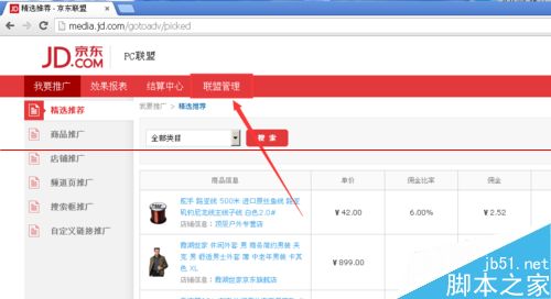 2、登錄好以后,我們來到京東聯盟,我要推薦頁面,我們點擊聯盟管理