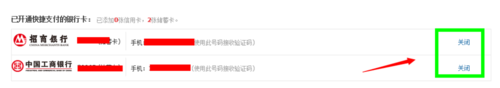1.5之后,點擊被綁定銀行卡后邊的“關(guān)閉”,即可,如圖
