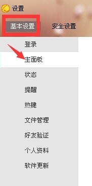 3、打開設置成功,并選擇“基本設置”下的”主面板“,