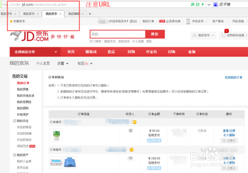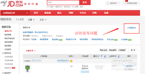 個人覺得是京東后臺的bug,一般在如下圖所示訂單列表位置點擊【訂單回收站】就會出現這個問題。