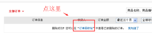 另一種方法是,在刪除訂單之后,立即點擊提示,也可以打開訂單回收站的首頁。