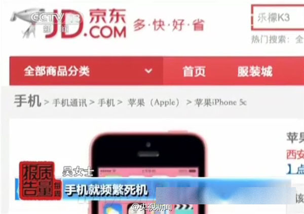報道稱,一位女士在京東上購買了一部全新的iPhone 5C,用了一個多月后,手機頻繁死機,直至后來完全不能開機。這位姓吳的女士希望在京東退貨,但京東方面無法辦理,只能提供換貨手續。