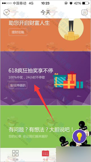 7、打開APP,在“今天”里一直往下拉便可看到 618瘋狂抽獎,進(jìn)入可以看到有一次抽獎機(jī)會。