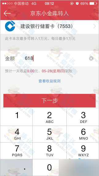 2、轉入618元以上現金,我們直接輸入618便可。