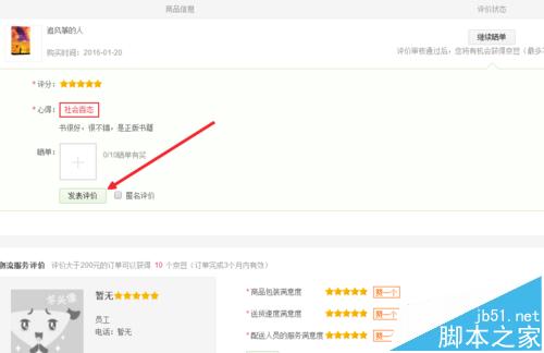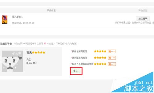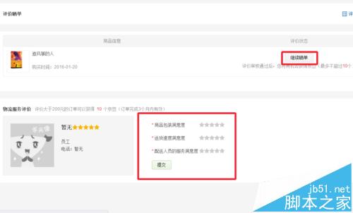 4、在這里我們可以對(duì)商品和物流進(jìn)行一個(gè)整體性的評(píng)價(jià),可以勾選星級(jí)。