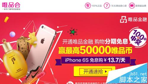 1、打開唯品會官網,點擊“唯品金融”