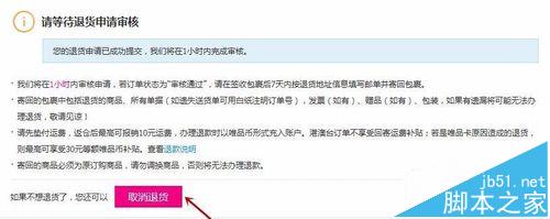 3、提交退貨申請(qǐng)成功后,系統(tǒng)會(huì)自動(dòng)提示退貨與退款的信息,如需修改可點(diǎn)擊“取消退貨”