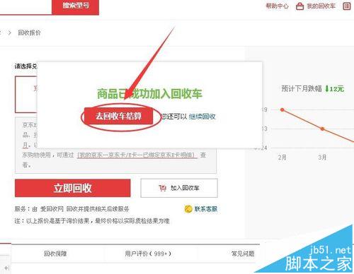 4、加入回收車后可以點按去回收車結(jié)算,也可以繼續(xù)回收,如果點按去回收車結(jié)算,界面就會跳轉(zhuǎn)到回收車界面,點按剛才回收訂單后面的去結(jié)算按鈕,然后會生成回收訂單,根據(jù)下圖中訂單詳情中的交易方式后面對應(yīng)的收貨地址和聯(lián)系電話準(zhǔn)備快遞即可。