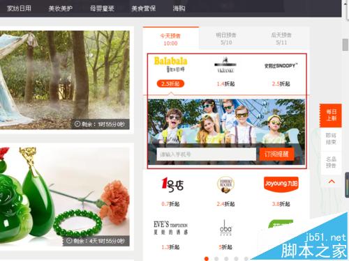 4、可以選擇【今天預告】【明日預告】【后天預告】,相應的時間下,相應的活動品牌。