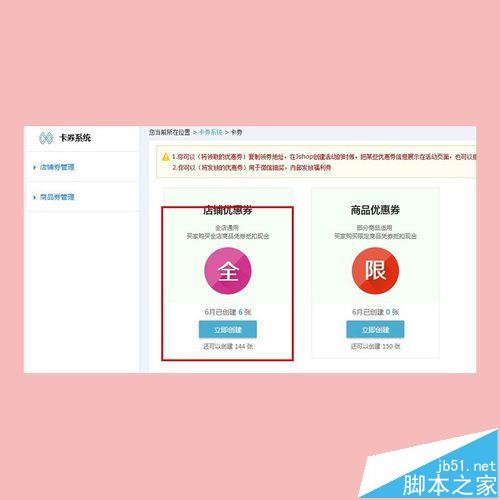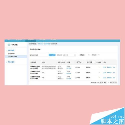 7、在已創建的店鋪券中可以看到創建好的店鋪優惠券;