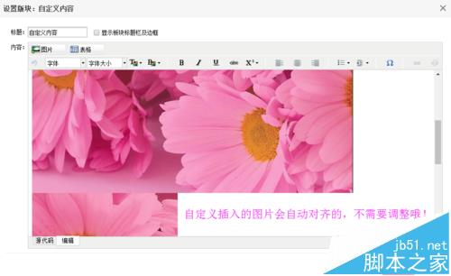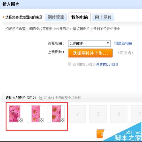 6、在自定義里面,插入圖切片好的圖片,選擇海報中間的3張圖片上傳即可。