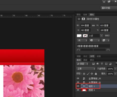 13、在海報的中間部分,【增加一個矩形填充白色】,放在【紅色的背景上方一層】即可。將背景調(diào)整好了,保存在桌面上,方便一會上傳時使用。這里就不一一演示圖片怎么保存了。