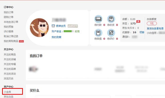2、在個人主頁的左側點擊“小金庫”。