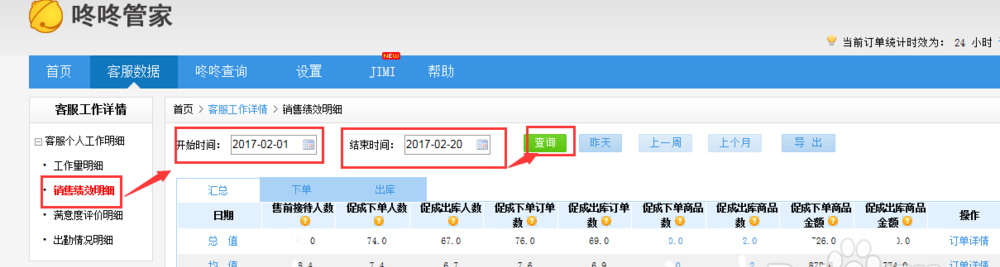 4、點銷售明細就會出現如圖這個界面了,這里查看所以業績的明細了。
