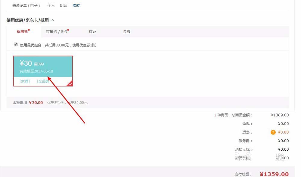 5、自動選出最大額的適用優惠券。提交訂單即可。