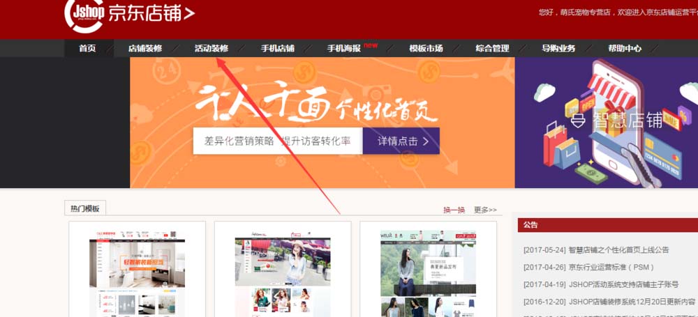 1、登錄京東后臺打開后臺專修選擇活動裝修