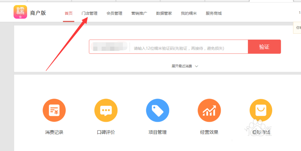 1、如圖所示,我們可以在電腦上登陸商家版,然后點擊門店管理