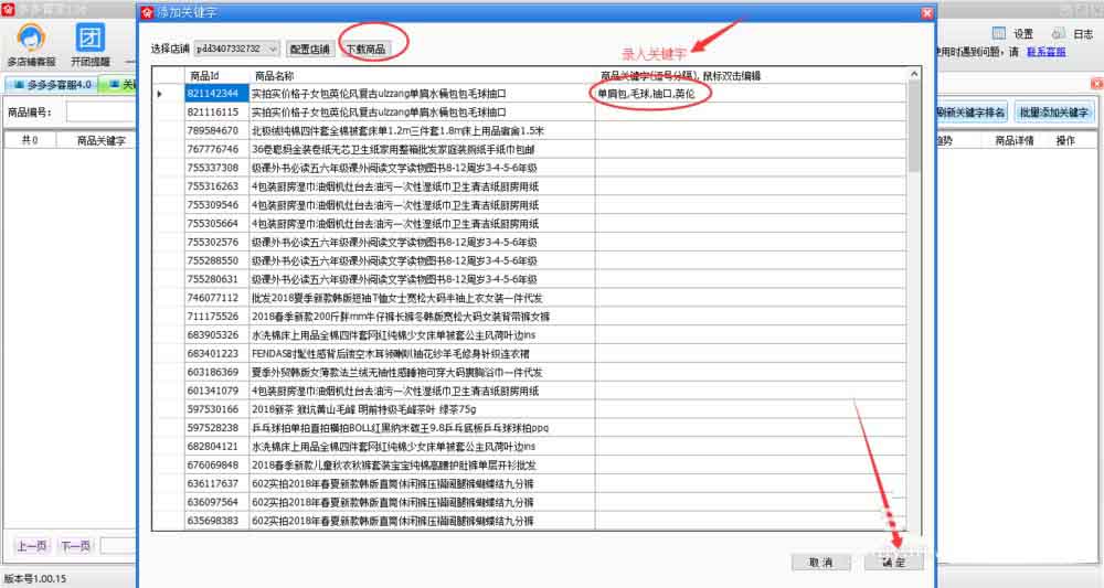 3、點(diǎn)擊下載商品按鈕-----錄入要查詢商品的關(guān)鍵字