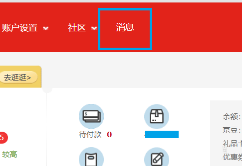 3、登陸后,在我的京東頁面點擊頁面上方的消息選項。在消息選項頁面進去后,同樣可以看到優惠券過期的提醒,可以說是多個渠道同時分發。