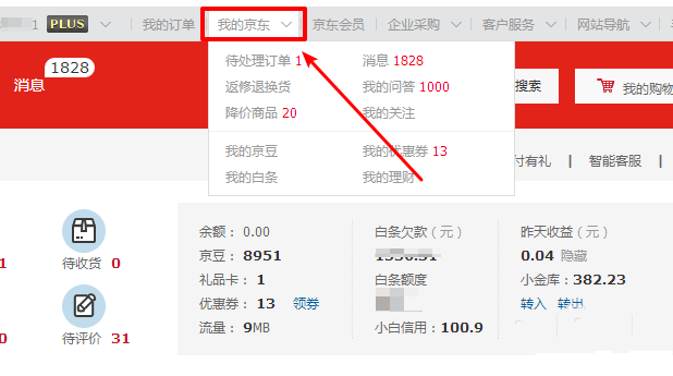 2、登錄成功后,點擊上方的“我的京東”,進(jìn)入到個人中心頁面。