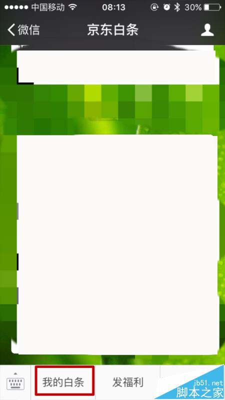 1、打開微信,搜索京東白條,然后進行關注,關注之后會出現京東白條的頁面,點擊最下方的“我的白條”,然后進入;
