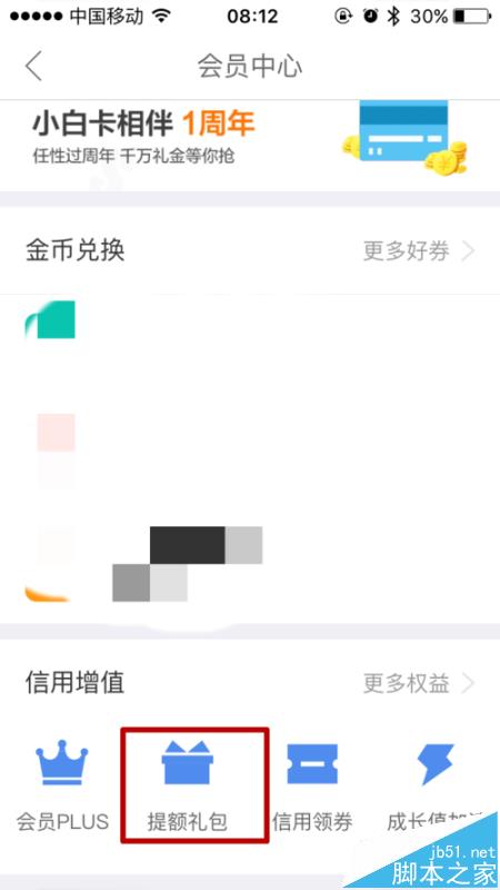 3、在會員中心頁面向上滑動,找到信用增值,在信用增值里面選擇提額禮包,點擊進入;