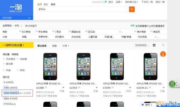 參考3:可以參考一淘網(wǎng)賣家價格上的設(shè)置以及價格變化。在一淘搜索欄里以”手機4s” 關(guān)鍵字搜索為例,我們可以看到推薦的價格“最多人的選擇”是在2500--3300元,如圖: