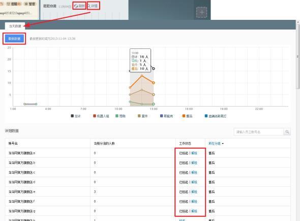 小編總結: 1)本期插件需商家手工點擊“刷新”按鈕才能獲取最新的實時數據(接待數據、子賬號工作狀態等); 2)子賬號工作狀態的說明:如果子賬號下線,分流插件會顯示“已掛起”狀態;如果子賬號上線,分流插件會把子賬號切換到分流狀態。
