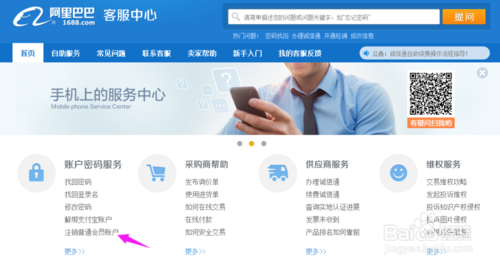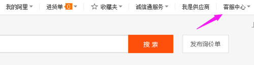 1、進入阿里巴巴的網站,然后再登陸進去,成功登陸以后在首頁中的點擊【客服中心】