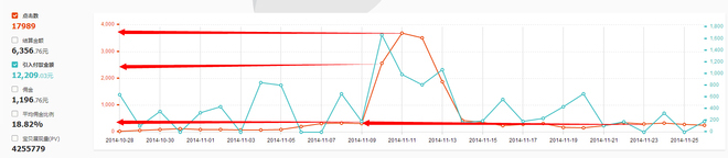 如意投平時帶來的流量只有300左右,但是在雙十一期間流量大增,達到3000多,而且如意投是按照成交計費的,我們只要把握好傭金的比列,基本上不會遇到什么風險。如意投的傭金最高只能設置50%。