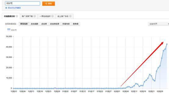 隨著3月8日婦女節的來臨,我們從關鍵詞的搜索情況看,“三八”丶”婦女節”等具有節日特性的關鍵詞,現在已經開始漸漸流量的攀升,而預計到接近3月8日的時候,流量可能達到最高峰,所以面對3月8日這個契機,各位掌柜需要提前做好準備。