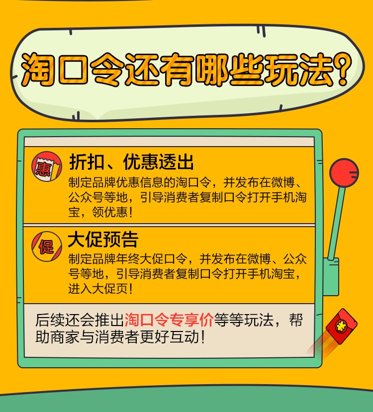 對賣家來說,淘口令是把散落在微信、微博以及各大社交平臺的流量收歸回淘內的神器。