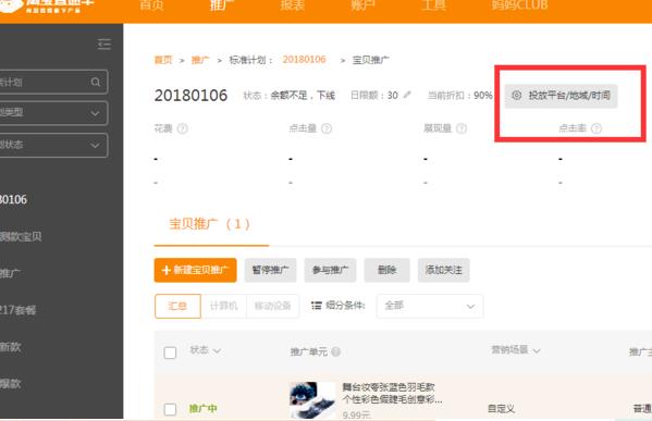 9、打開這個計劃后,點擊“投放平臺/地域時間”